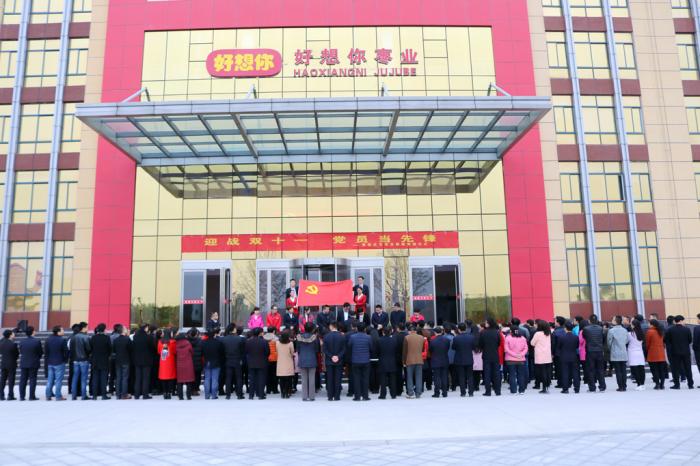當天早晨,在凜冽的寒風中,總部全體行管人員集聚行政中心前,在這個莊嚴的時刻凝心聚力。連鎖門店事業部總經理兼營銷系統負責人司胤衡主持儀式,由董事長石聚彬親手為優秀黨員代表石強、豆妍妍、王光群等佩戴黨徽,號召各位好想你人積極投入到雙十一這一重大的節日中,貢獻自己的力量。