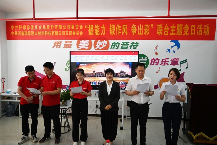 通過本次活動,好想你健康食品股份有限公司和河南瑞泰耐火材料科技有限公司加深了兩個單位的了解,學習了對方好的工作經驗和做法,共享共學,共促發展。今后雙方將進一步做到內外互聯、優勢互補、平臺互動,充分發揮黨組織的主體作用,將黨建融入到業務工作中,通過黨員力量,傳承紅色基因,弘揚紅色故事;激發黨員堅持不忘初心、牢記使命,以實事求是、求真務實、不驕不躁、腳踏實地的崇高精神,緊密結合實際、提高自身政治站位、立足本職工作,積極發光發熱,說實話、干實事、身體力行、埋頭苦干、樹立良好的黨員形象,主動提升個人能力,鍛造作風,爭先出彩,為好想你“百億市值、百億收入、百年品牌”的三百戰略目標開拓創新,為好想你高質量發展貢獻力量,為黨和人民的事業做出自己應有的貢獻,以實際行動迎接黨的二十大勝利召開。